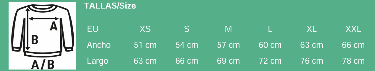 La sudadera está confeccionada en 60% algodón y 40% poliéster, con un gramaje aproximado de 290 g/m², ofreciendo una prenda resistente y cómoda. Además, cuenta con tratamiento anti-pilling, lo que ayuda a mantener la sudadera como nueva por más tiempo.